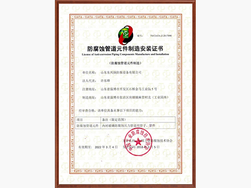山東東興揚(淄博五環(huán))防腐設備有限公司是專業的鋼襯玻璃廠家,鋼襯玻璃,鋼襯玻璃管道等產品使用壽命長,造價低,集開發(fā)、設計、生產、經營于一體的專業性的工業防腐單位,被評選為中國 工業防腐蝕技術協會會員企業單位。